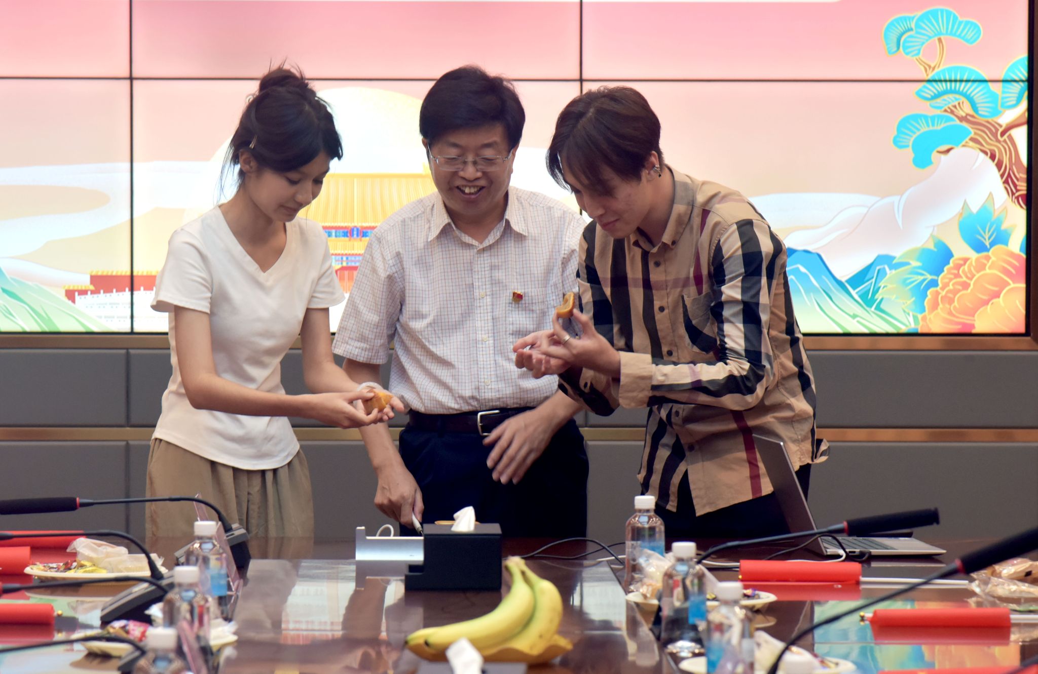 活动中,胡海建与学生共切月饼,现场欢声笑语不断。为弘扬中华文化,现场特别播放了巴黎奥运会上夺冠的艺术体操节目《凤鸣凌霄》,激发了师生的文化认同与自豪感。