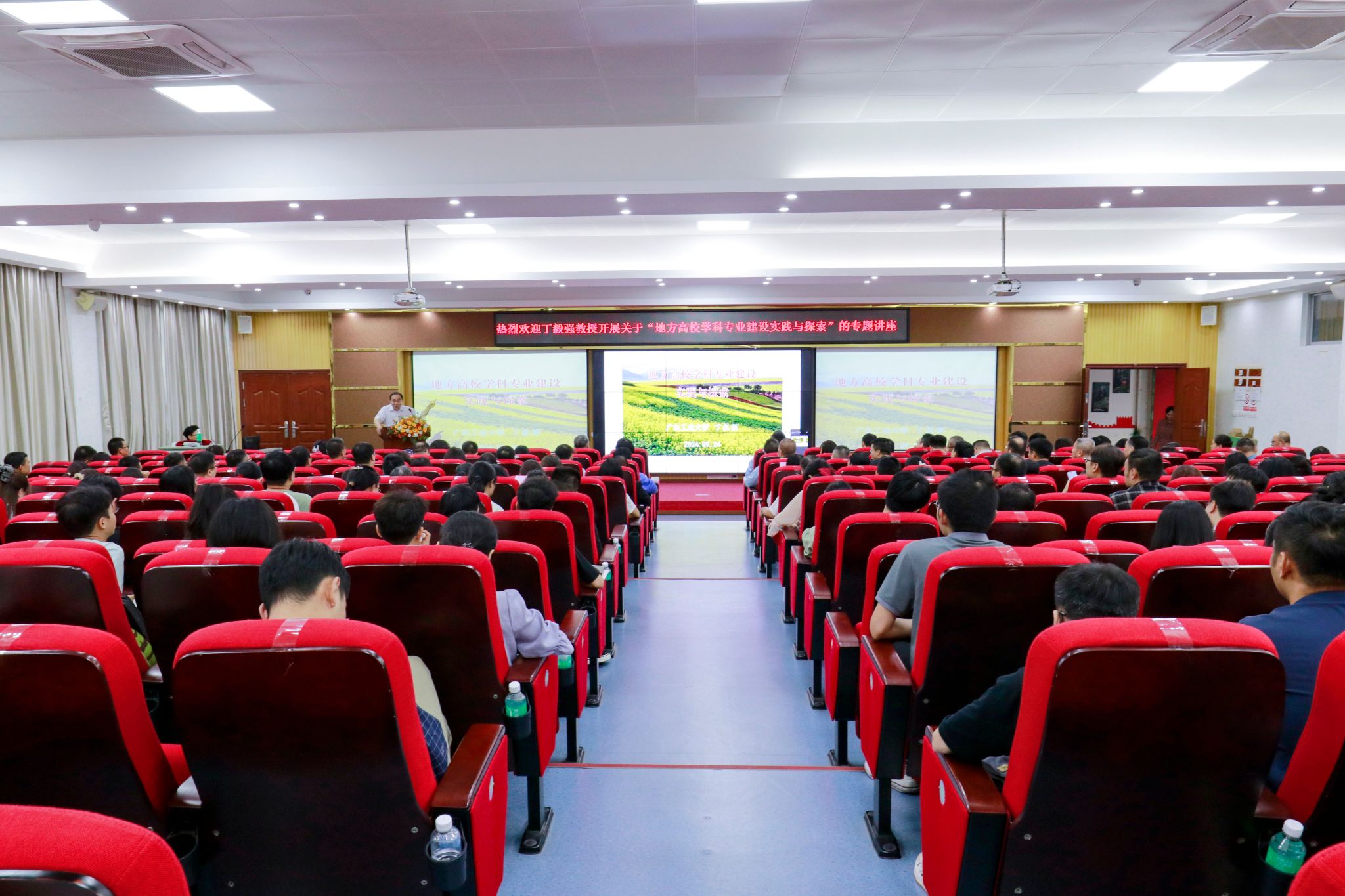 本网讯(科技处)为贯彻落实党的二十届三中全会精神,不断提高教师队伍素质水平,共同为伟德官网学科建设高质量发展打开新局面、增添新活力,2024年9月24日下午,学校邀请广东工业大学原学位办主任丁毅强教授作“地方高校学科专业建设实践与探索”专题讲座。本次会议在42栋101学术报告厅举行,学校领导、各教学单位院长(主任)、教研室主任、各专业带头人及教学单位骨干教师、青年教师等共260余人参会,会议由学校常务副校长柴维斯教授主持。