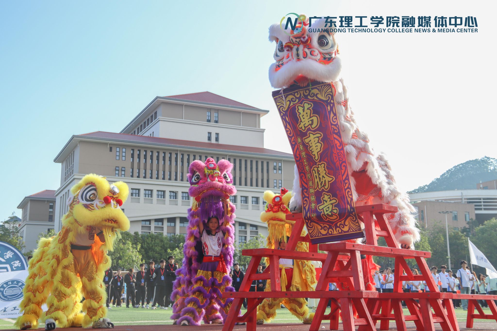 在全场热烈的掌声中,校长张湘伟宣布:“伟德bv国际体育第二十届田径运动会正式开幕!”话音刚落,校醒狮队、武术队、跆拳道队以及体育舞蹈队轮番上阵,为现场观众带来了一场视觉盛宴,充分展现了广理学子的青春活力与独特魅力。