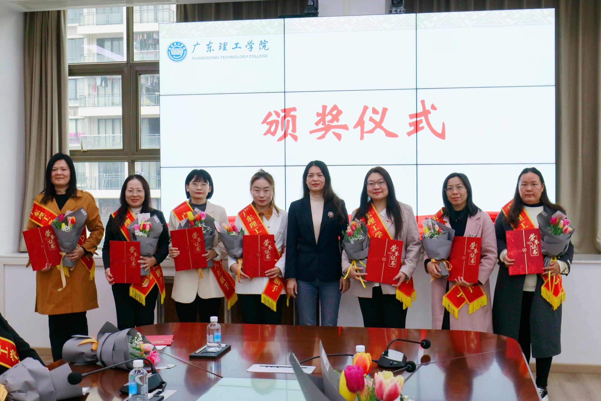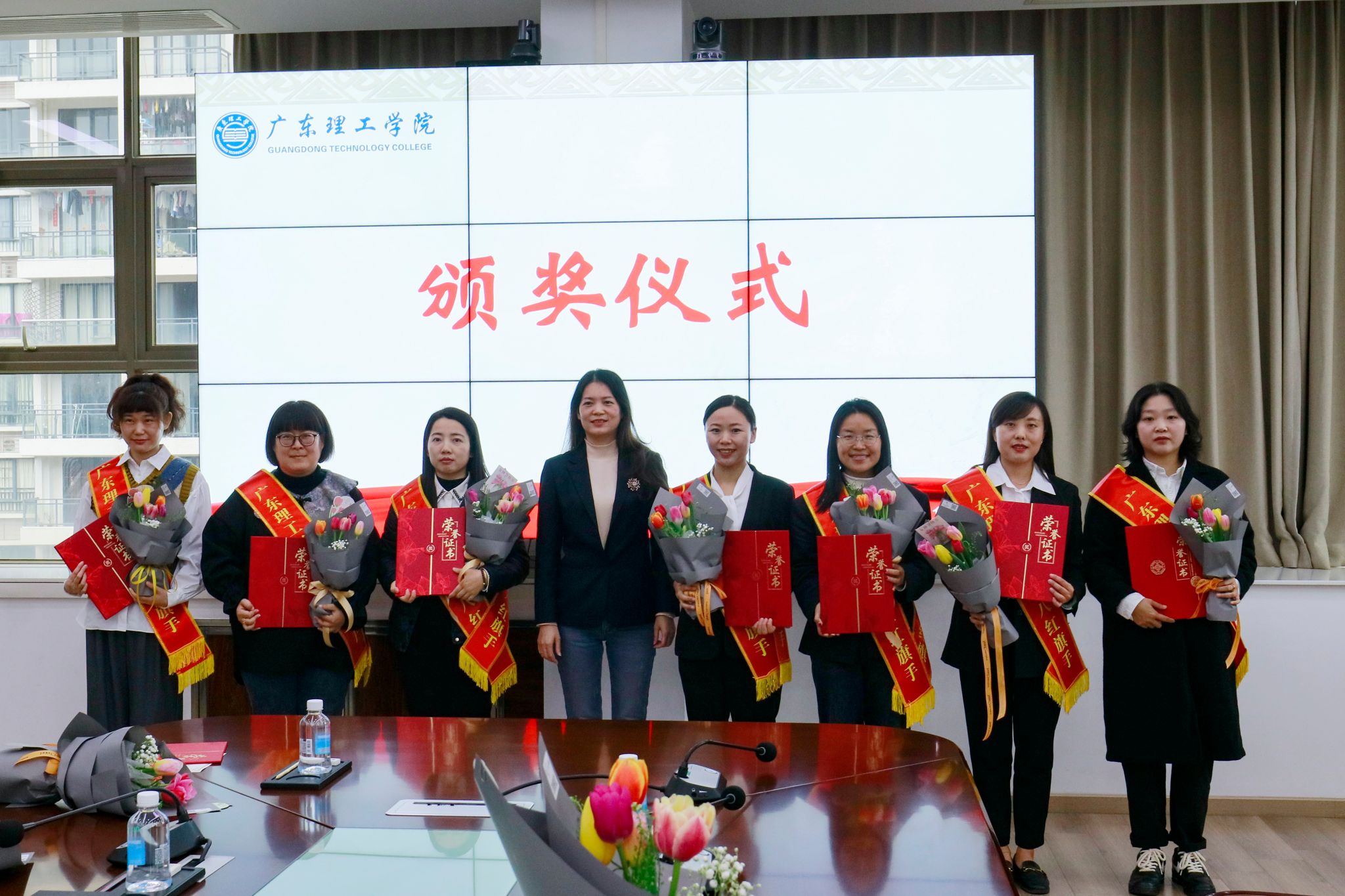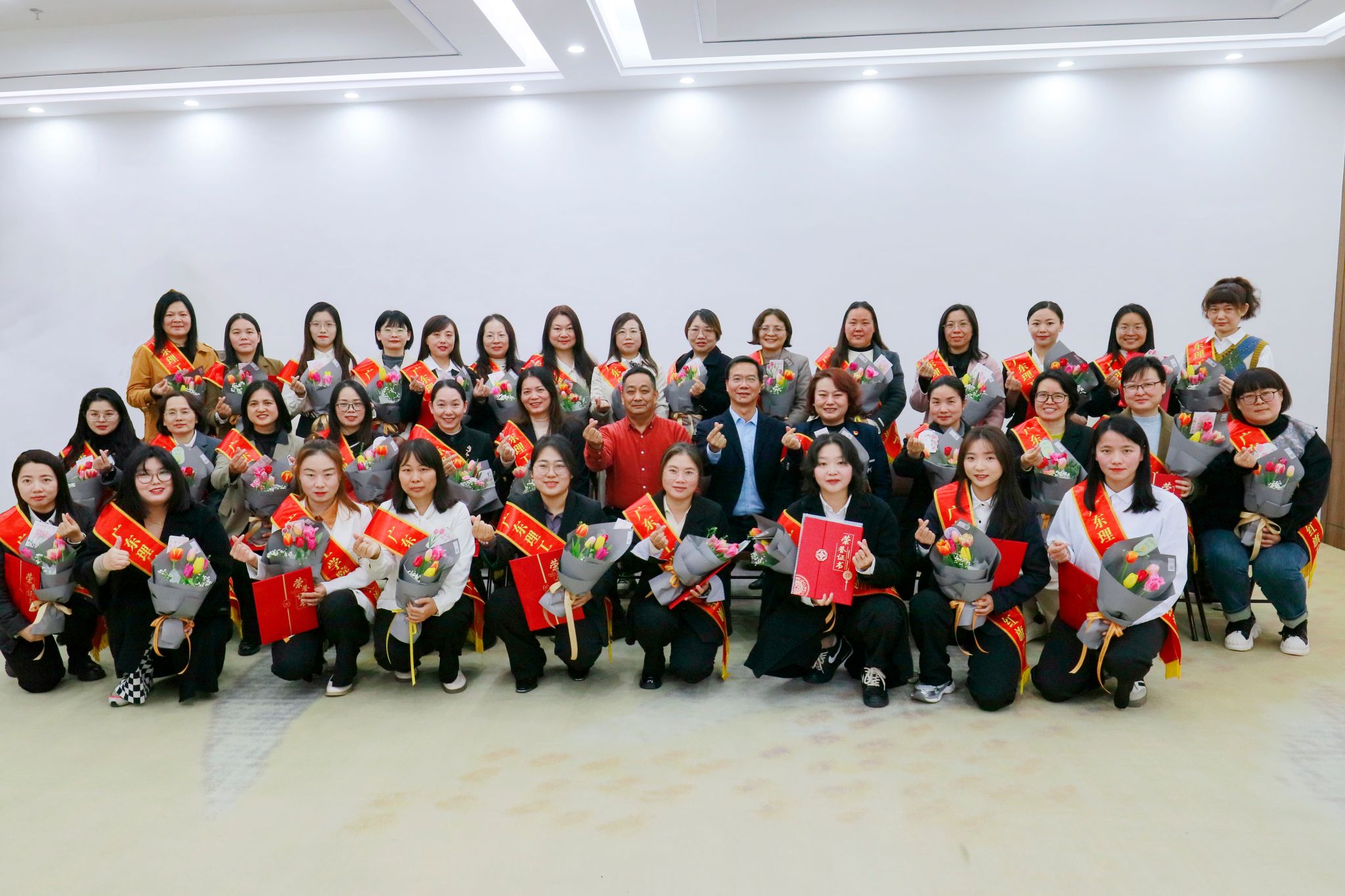 本网讯(宣传部)3月7日下午,在第115个“三八”国际劳动妇女节即将到来之际,学校综合楼12楼会议室洋溢着温暖奋进的气息。学校在此隆重举行庆祝三八国际女节暨表彰大会,授予韦桂柳等40位优秀女性教职工“三八红旗手”荣誉称号,通过树典型、立标杆,激励全体女教职工在学校高质量发展中再建新功。学校党委副书记张宗珊,妇联代表、副校长唐建宁出席大会。工会代表、副校长谭锦兴主持。