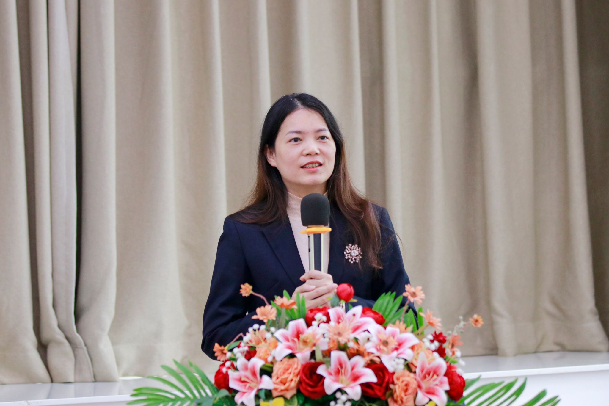 唐建宁在讲话中高度赞扬全校女教职工的卓越贡献。她指出,学校女同胞以“巾帼不让须眉”的豪情,在教学、科研、管理服务各条战线勇挑重担,涌现出一大批师德高尚、业务精湛的先进典型,用智慧与汗水撑起了学校高质量发展的“半边天”。