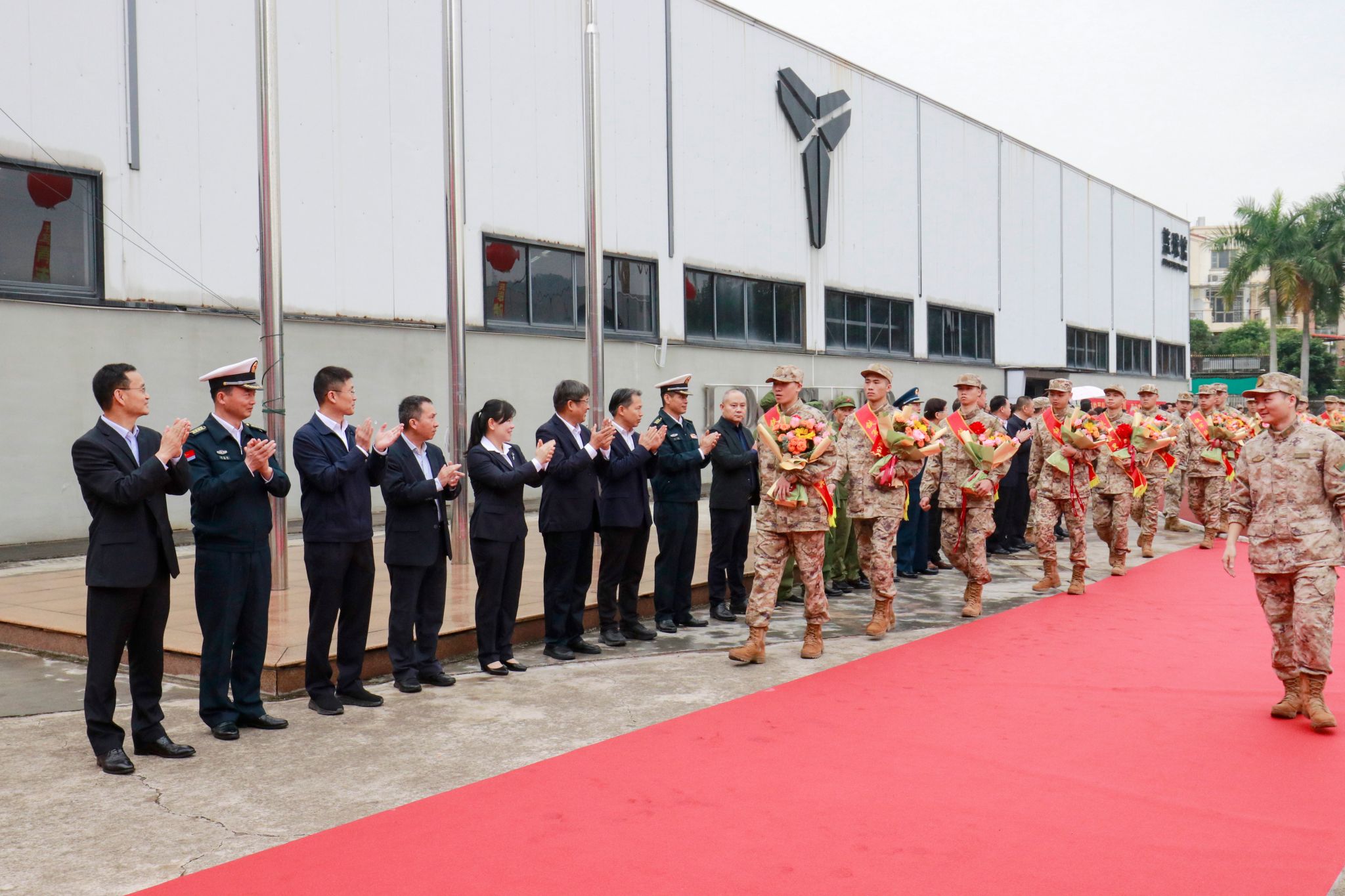 全体新兵胸戴红花、戎装飒飒,齐声高唱。仪式在嘹亮的《中国人民解放军军歌》中落下帷幕,军地领导与新兵们合影留念。“出征门”前,军地领导与新兵家属夹道相送,挥手告别。新兵们带着家乡与亲人的嘱托与期望,踏上保家卫国、报效祖国的新征程。