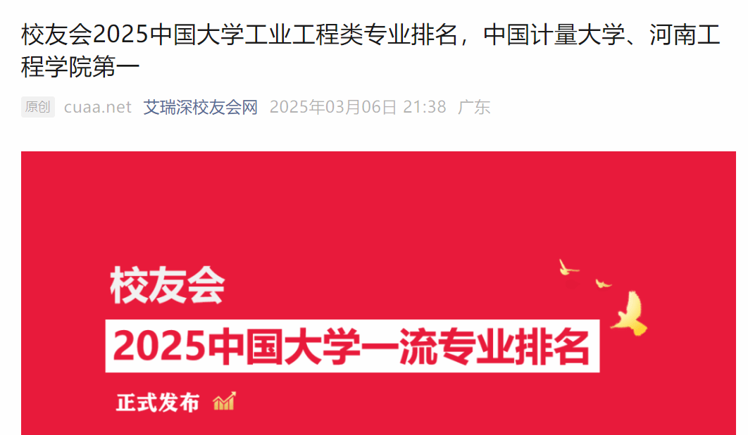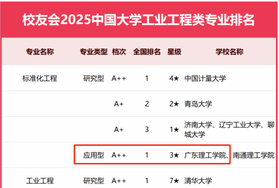 本网讯(经济管理学院 魏嫚)2025年3月,全国第三方大学评价机构艾瑞深校友会网(Cuaa.net)公布最新校友会2025中国大学一流专业排名,专业排名评价指标由学科水平、培养质量、师资水平、专业水平和专业影响等5大指标构成,标准化工程专业排名(应用型)中, 伟德bv国际体育获评2025中国三星级应用型专业(3★),晋升中国区域一流应用型专业行列,荣登冠军,这是自2024年以来第2次荣登校友会专业排名榜首。