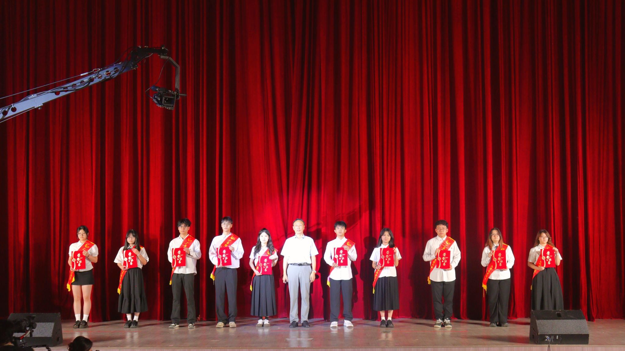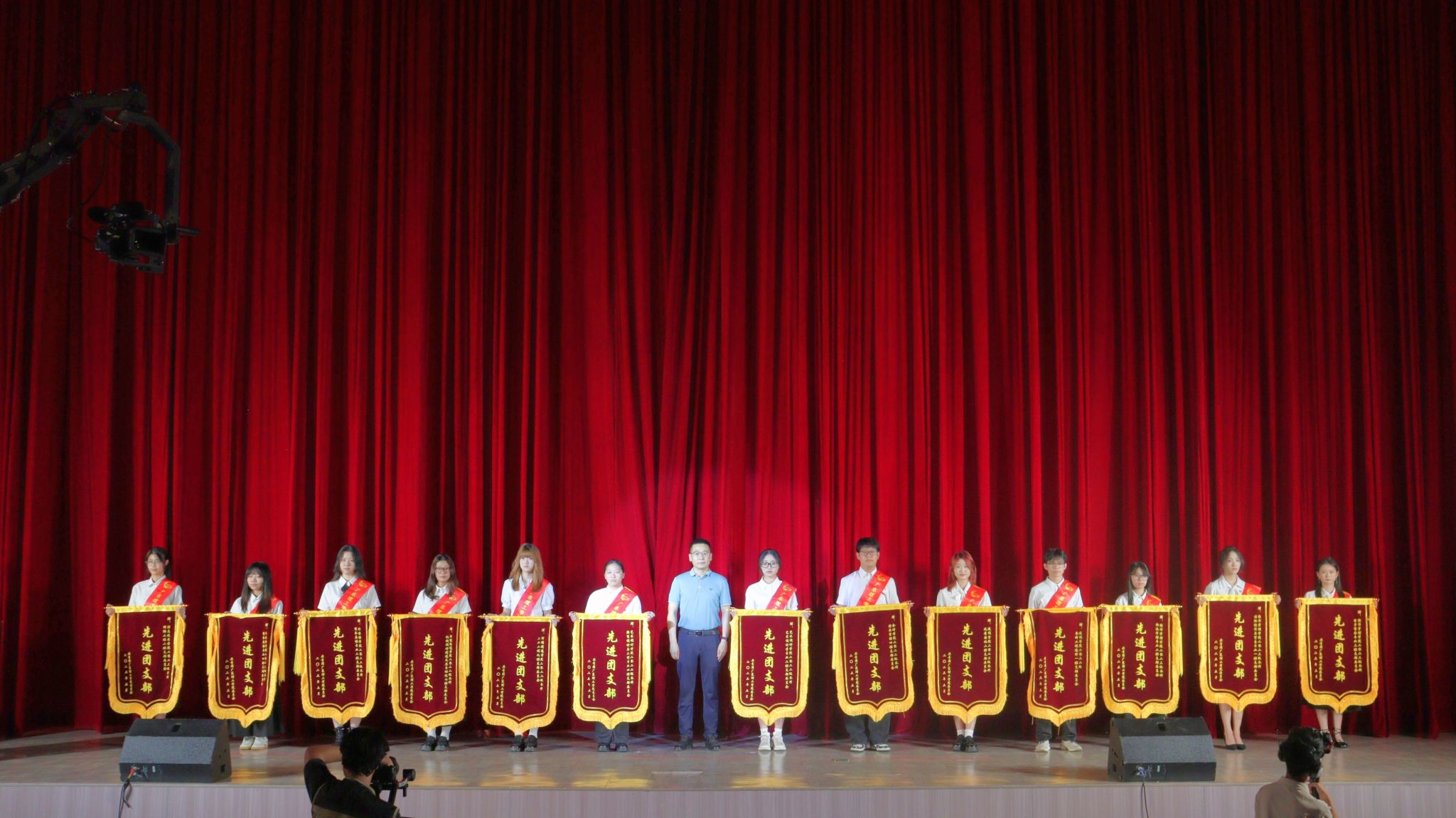 本网讯(校团委 阮维嘉)5月13日晚19时,伟德bv国际体育高要校区翔中堂华灯璀璨,2025 年 "薪火淬星河,铸盛世荣光" 纪念五四运动 106 周年暨五四表彰文艺晚会在此隆重举行。本次晚会旨在弘扬五四精神,通过表彰先进典型与文艺演出相结合的形式,展现新时代青年昂扬向上的精神风貌,激励广大青年为实现中华民族伟大复兴的中国梦贡献力量。