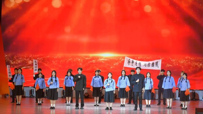 晚会第一篇章“薪火初燃”,校广播站带来的朗诵《青春的火炬永不熄灭》回溯百年,从五四运动的爱国浪潮,到不同历史时期青年的使命担当,再到新时代青年在各领域的拼搏,号召青年传承五四精神。