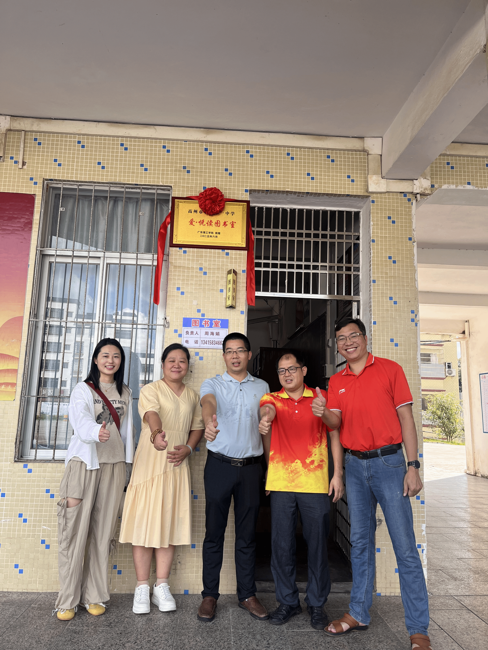 “希望这些书籍能成为孩子们看世界的窗口,让阅读照亮他们的成长之路。”谭锦兴副校长在“爱·悦读图书室”挂牌仪式上谈道,图书室不仅是物理空间的建设,更是阅读生态的培育,通过“纸质 + 数字”双轨模式,相信可以破解乡村学校图书资源陈旧匮乏的困境。在石板中学,校长覃雄彪代表受援学校回赠捐赠证书及“基础教育帮扶工作先进组织者”荣誉证书,并表示“图书室将成为学生探索世界的起点”。