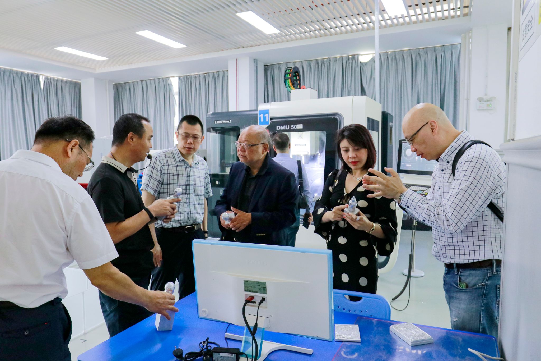 会前,在伟德官网相关人员陪同下,梁伟强副校长一行实地参观考察了学校的加工中心实训基地、人工智能产业学院等教学科研场所。代表团对学校的实践教学条件、产教融合成果及校园环境给予了积极评价。