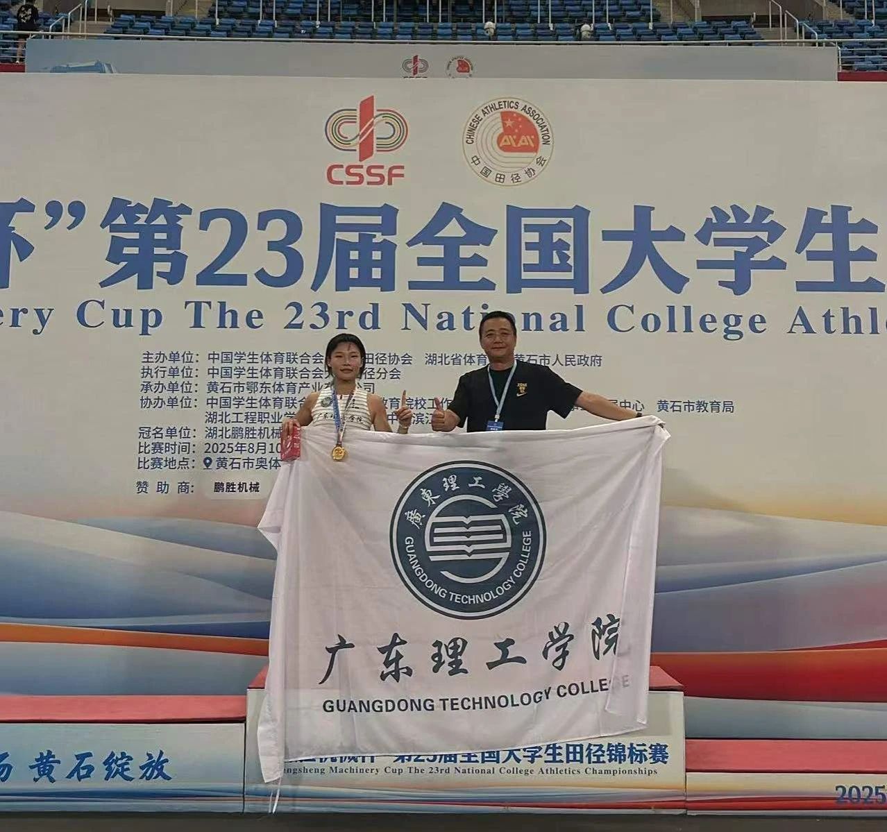 此次夺冠并非偶然。伟德官网田径队是一支充满朝气与拼劲的队伍,曾在广东省第十二届大学生田径运动会上斩获1金1银1铜的佳绩。为备战全国大赛,学校和体育学院领导高度重视,为教练员和队员提供了全方位的支持与保障。李湘薇同学的夺冠,既是她个人刻苦训练的结果,也是学校坚持“五育并举”、注重学生全面发展的生动体现。