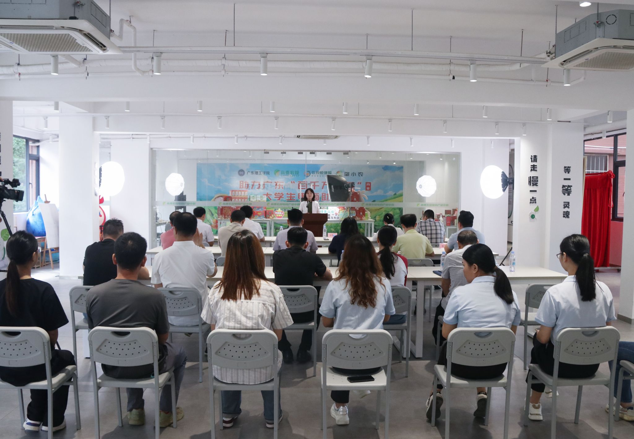 “乡村网红”工作室由肇庆市委网信办、高要区委宣传部与伟德官网三方共建,依托伟德官网高要农投电商产业中心打造,占地面积约500平方米,设有1个众播直播间和7个独立直播间,集乡村网红培训、特色农副产品直播带货、网络人才交流融合等功能于一体。