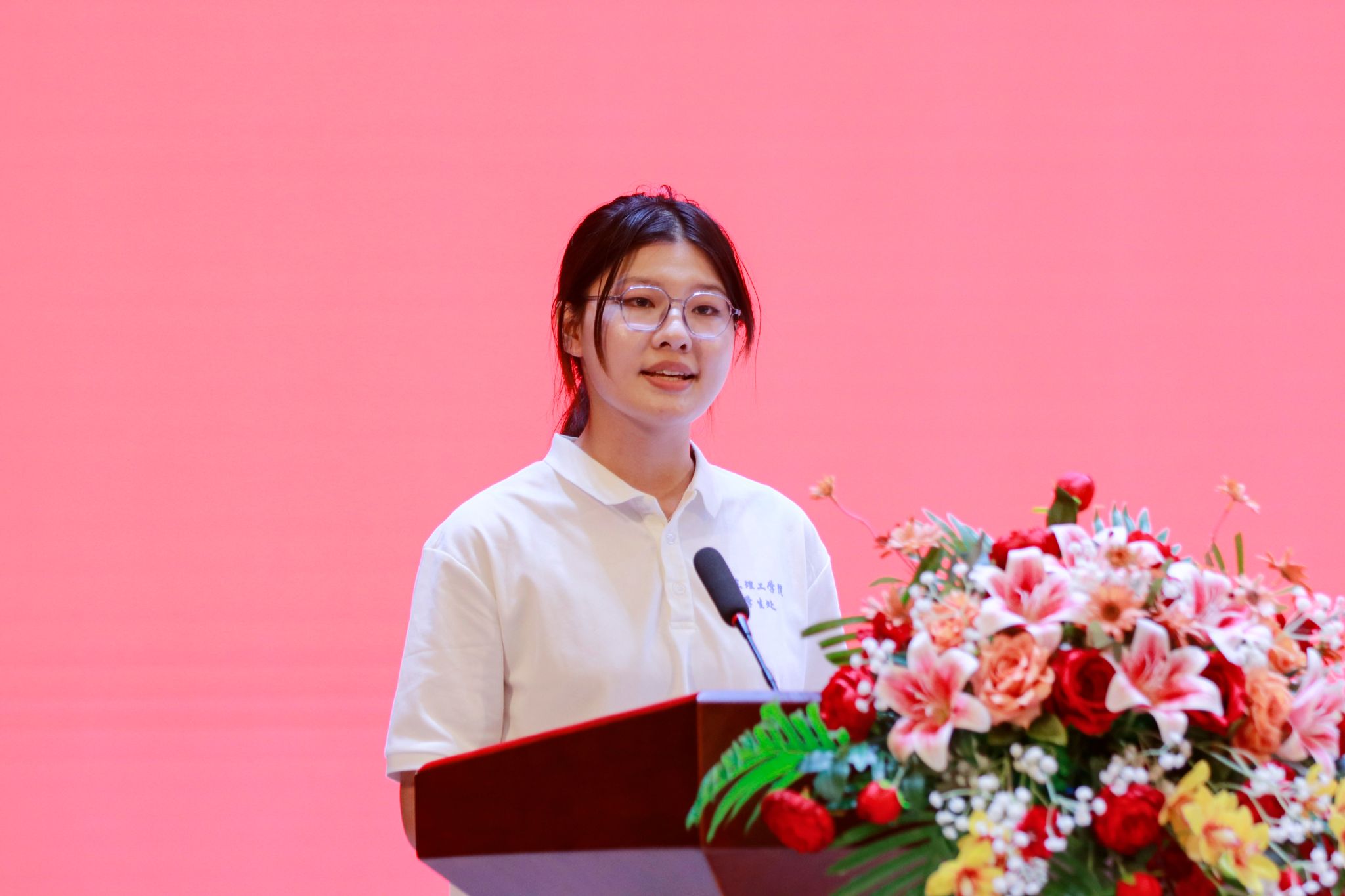 学生代表、智能制造学院2023级本科交通运输1班李潇同学代表全体学生向老师们致以节日问候和感谢。她回顾了老师们在学业和生活上对学生的悉心指导与关怀,表达了同学们将牢记教诲、努力学习、不负期望的决心。