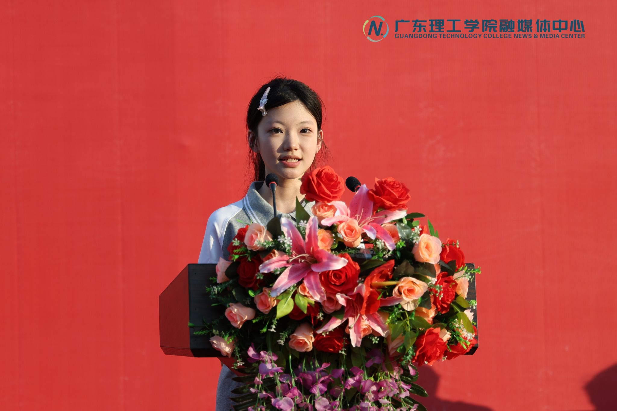 教师代表、基础课教学部李亚男教授用“微积分思维”阐释大学学习:把无穷小的时间投入汇聚成无穷大的能力增量,鼓励同学每天前进0.01,四年即可放大千倍,引发新生强烈共鸣。经济管理学院李博博士则结合学校30年办学脉络与粤港澳产业动态,用“扎根湾区、服务产业”的鲜活案例,向新生提出“修德立身、求是笃行、拥抱变革”三点建议,并代表全体教师承诺以“四有”好老师标准托举学生成长。