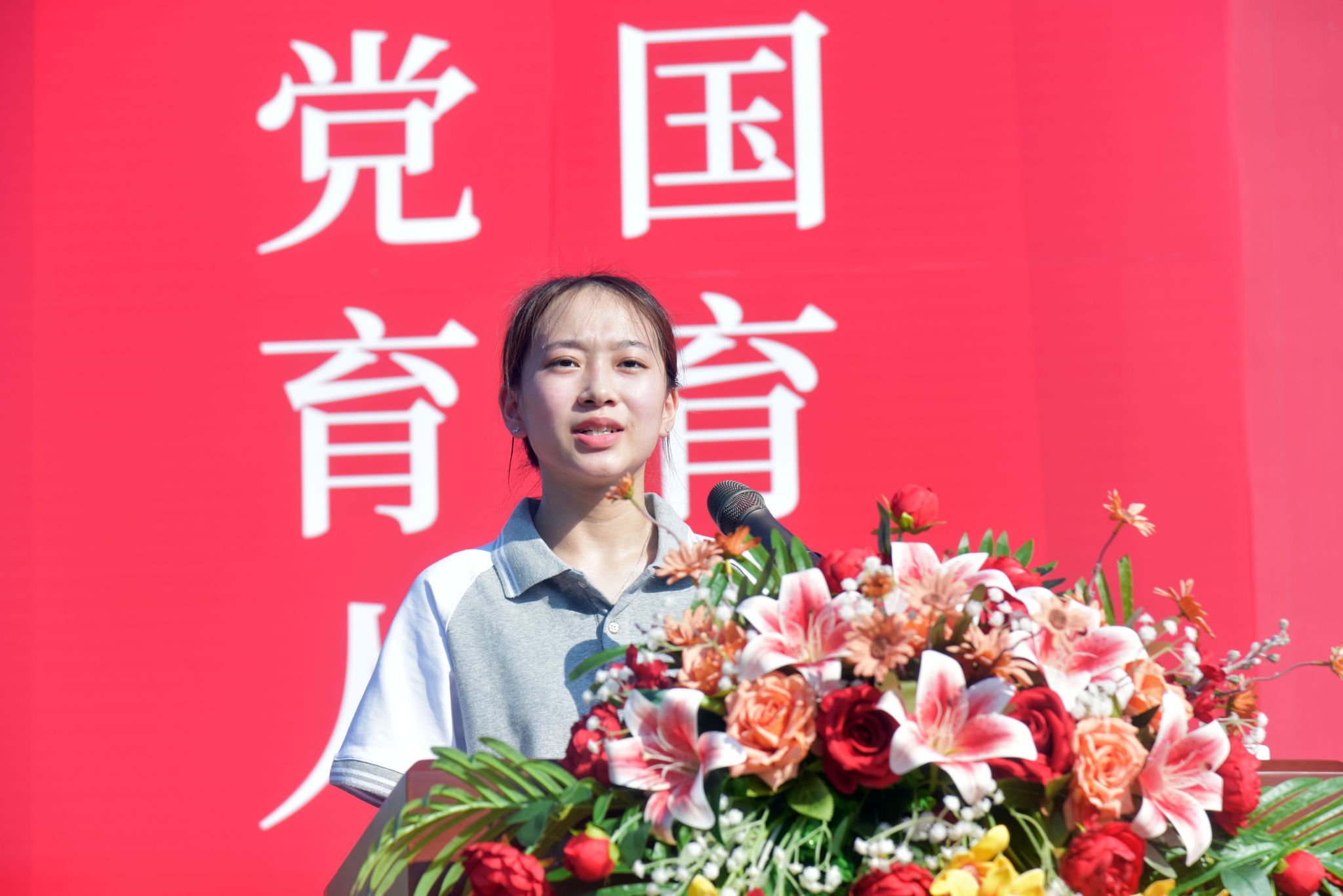 新生代表、外国语学院陈伊琦和建设学院欧阳志娟以“青春由磨砺而出彩”自勉,将校训细化为四年行动清单,表达了“把个人理想写进民族复兴大文章”的共同决心,并发出“请党放心、强国有我”的青春宣言。