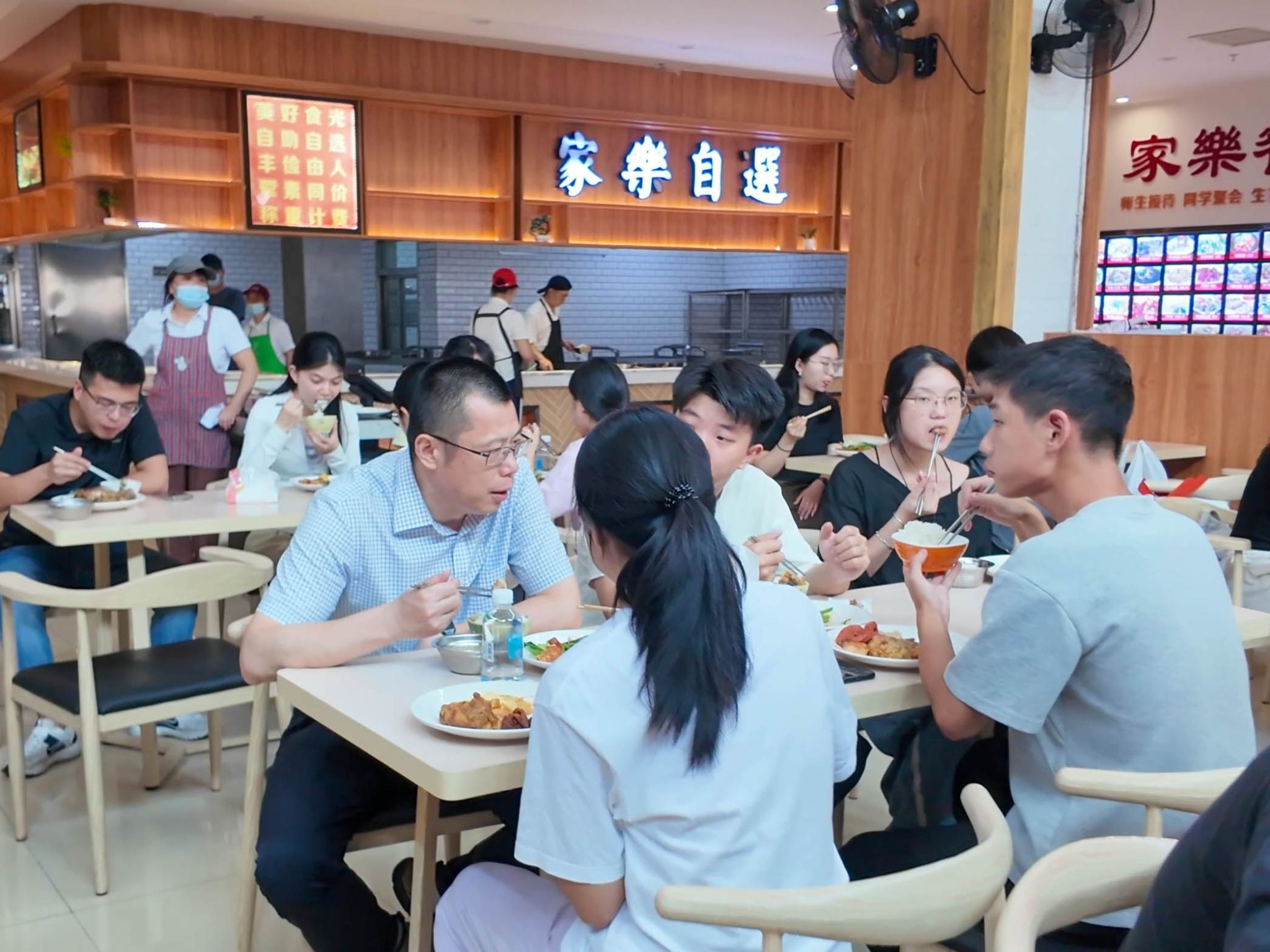 座谈会后,师生移步学校食堂共进午餐。餐叙之间,交流氛围轻松自然,话题也从校园建设延伸至学业规划、校园文化等多个层面。此次“座谈+午餐”的创新形式,不仅拓展了沟通的广度与深度,更在温馨互动中拉近了师生距离,增强了学生对学校的认同感与归属感。