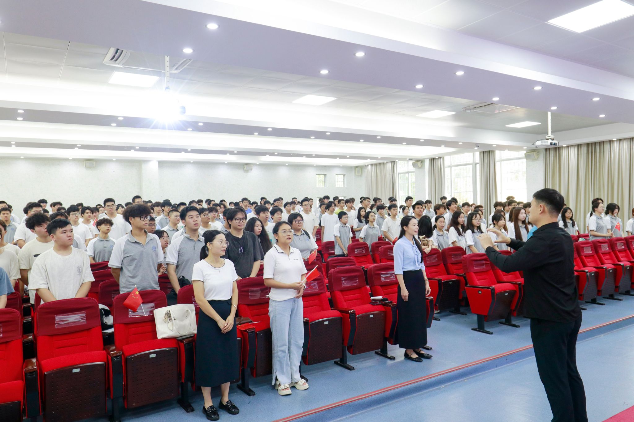 胡海建随后以 “落后就要挨打” 的历史教训为鉴,结合九三阅兵中国之重器的亮相,展现了新时代中国筑牢国防、捍卫和平的实力。同时,他聚焦当下持续升级的国际局势,讲述中国坚定支持 “两国方案”解决巴以问题,推动召开国际和会。让学子深刻理解和平需要实力捍卫,让学子们更明晰何为 “构建人类命运共同体” 的中国智慧与中国方案。最后向全体学子送上青春寄语:希望手握抗战精神火炬的学子们,以理想情怀和实干精神,将爱国强国之志化为报国之行,用奋斗书写无悔青春篇章。