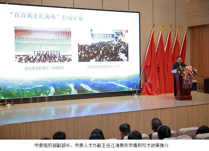 推介会现场,江海燕详细介绍了“百万英才汇南粤 ”行动计划、肇庆的人文历史景观、人才政策、产业发展、基础设施等基本情况,重点介绍了肇庆在粤港 澳大湾区中的独特优势。他希望学校更多毕业生能够积极参加“百万英才汇南粤 ”大型招聘活动,号召学生能够将自身所学知识与肇庆的发展紧密联系在一起,实现人生价值。