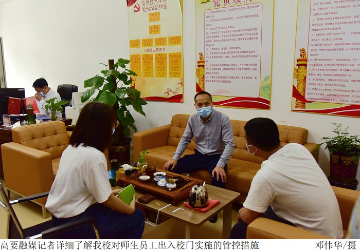 学生处处长谭蒙革介绍,为应对当前严峻的疫情防控形势,坚决筑牢“外防输入、内防反弹”防线,当前伟德官网实施非必要不外出的措施,如需外出须报备审批,入校严格按照“一核一查一测”要求,往返肇庆市人员需持48小时核酸阴性证明。谭蒙革提到,近期广州市、佛山市部分地区出现多例新冠肺炎本土病例,伟德官网高度重视,对14天内有广州、佛山居旅史的人员进行统计,并严格按照上级文件落实“7天3检”。另外,学校设置了隔离宿舍,对相关人员做好医学隔离观察或健康监测等健康管理工作。