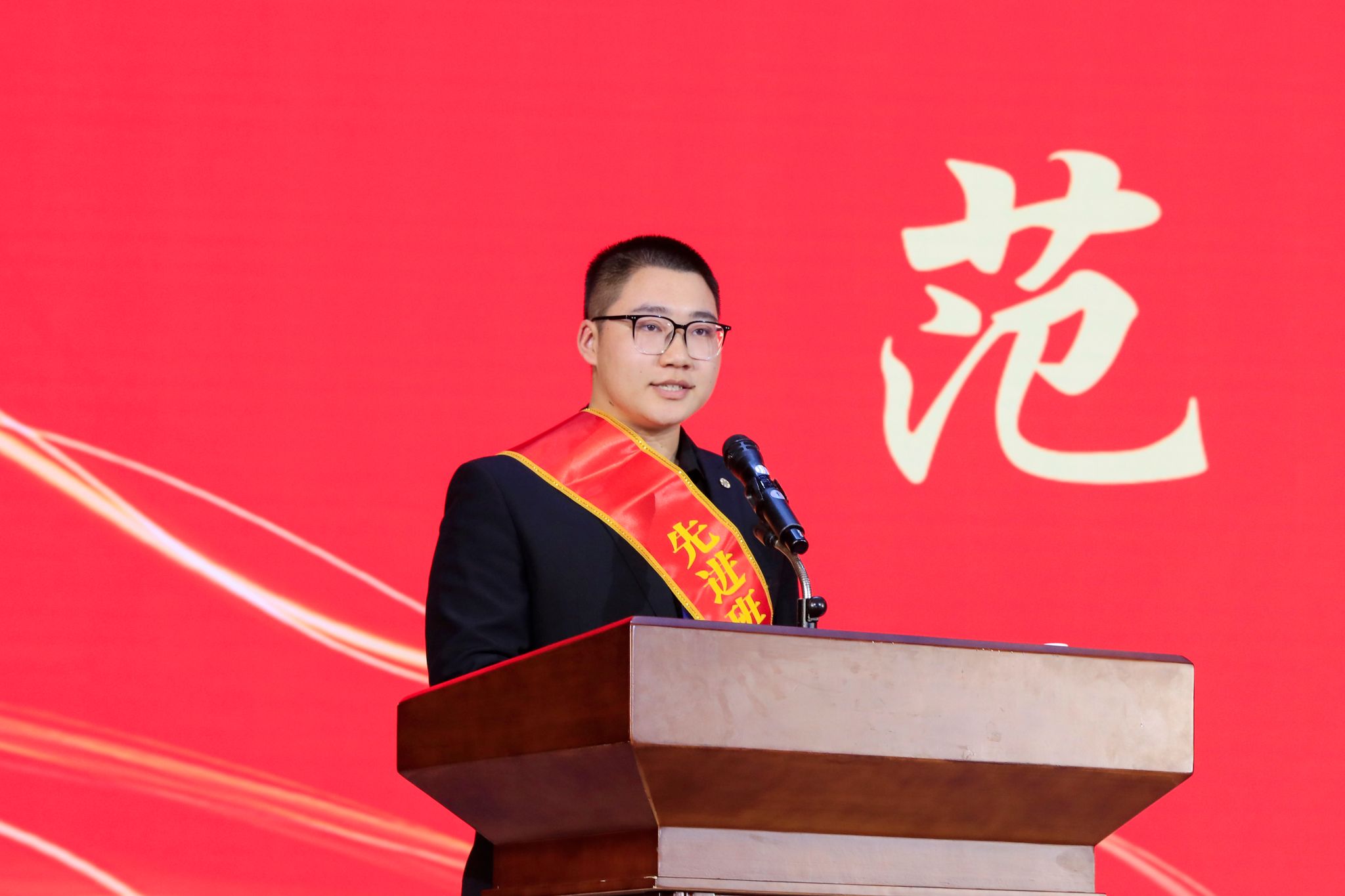 在获奖代表发言环节,先进班集体代表、智能制造学院2023级机器人工程1班班长范书滔分享了班级成长的感悟。他指出,“勤学”是班级探索未知、锤炼专业素养的共同姿态;“互助”是集体内部风雨同舟、彼此支撑的温暖底色;“担当”则是同学们志存高远、回馈社会的青春宣言。这份荣誉是对过去的肯定,更是对未来继续并肩前行的激励。