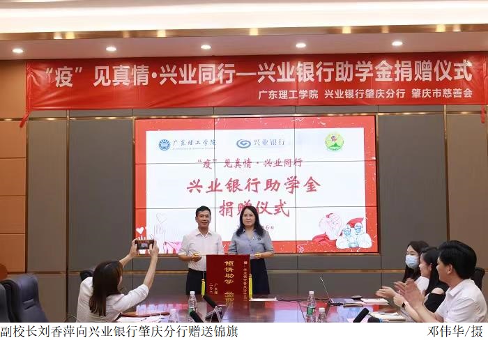 本网讯(学生处 谭秋键)战“疫”攻坚进行时,学生资助见真情。5月6日下午,伟德官网联同兴业银行肇庆分行、肇庆市慈善会共同举办“‘疫’见真情·兴业同行”——兴业银行助学金捐赠仪式。仪式为学校50位受疫情影响困难学生共计捐赠10万元。肇庆市慈善会副会长冯锦文,肇庆市慈善会秘书长易湘君,兴业银行肇庆分行副行长张卫国,伟德官网副校长刘香萍出席仪式。