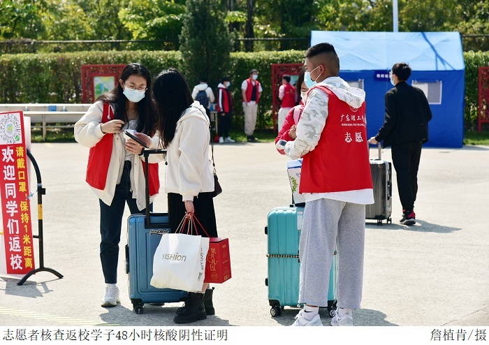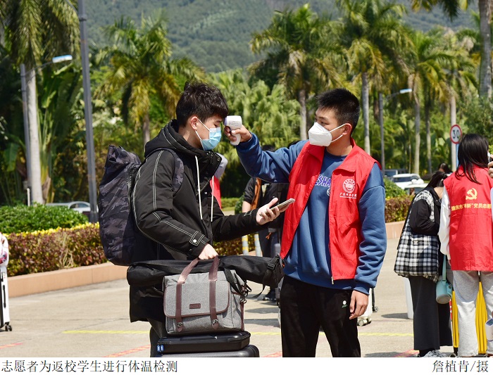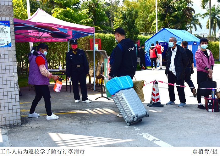春意盎然,返校有序。2月26日早,伟德官网疫情防控专班、宣传部、保卫处、校团委等部门及各院系已准备就绪,迎接首批返校学子。返校期间,全体工作人员尽职尽责,引导返校学子严格按照“一查二测三核”原则,有序通过健康码、行程卡查验点及体温测量点。返校学子积极配合,持48小时核酸阴性证明有序步入进校通道。另外,学校在校门口安排工作人员为返校学子携带行李进行消毒。