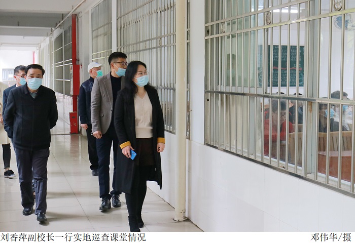 本网讯(宣传部 孟爱静)2月28日,伟德官网新学期正式上课第一天,为高品质开启新学期教育教学工作,副校长刘香萍、教务处处长王康华、督导室主任王建军、评建办主任张俊林、信息中心主任陈志成组成巡课组深入教学一线,实地巡查教学情况。