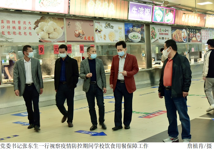 在食堂、学生宿舍等地,张东生一行视察疫情防控期间学校饮食用餐保障工作;与同学们亲切交谈,详细了解同学们当前就餐、线上学习等情况。张东生再三叮嘱同学们要深刻认识当前疫情防控的严峻形势,积极配合学校落实疫情防控各项措施,在做好个人防护的同时加强锻炼,合理安排学习生活。