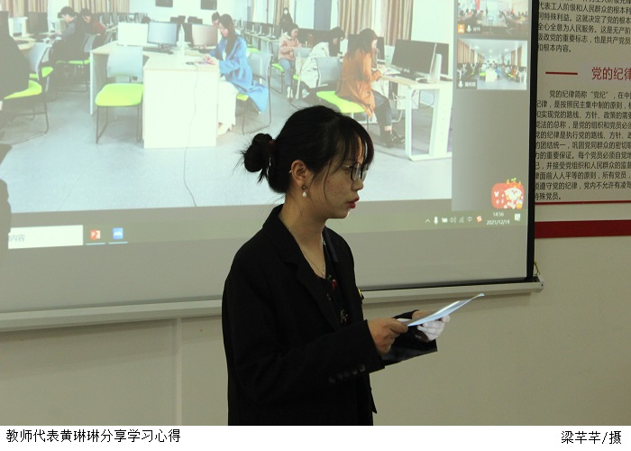 紧接着,黄琳琳同志谈到,通过学习党的十九届六中全会精神的一个主题、两个确立、三次飞跃、四个阶段、四个伟大飞跃、五点意义、十条历史经验等内容,从中对党的十九届六中全会有了深刻的认识。她表示作为一名党员教师应立足教师岗位,不断总结教学经验,改革教学方法并积极响应组织号召,埋头苦干鼎力前行。