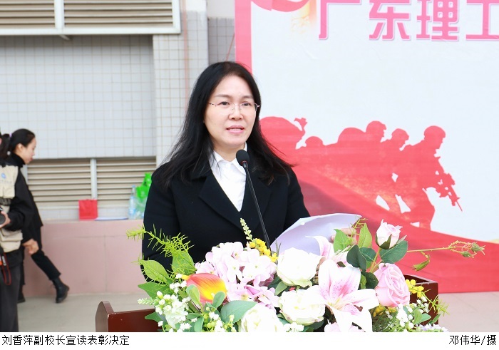 刘香萍副校长宣读表彰决定。出席大会的领导分别为军训优秀教官代表、军训优秀助理教官代表、军训先进集体代表、军训先进个人代表颁奖。