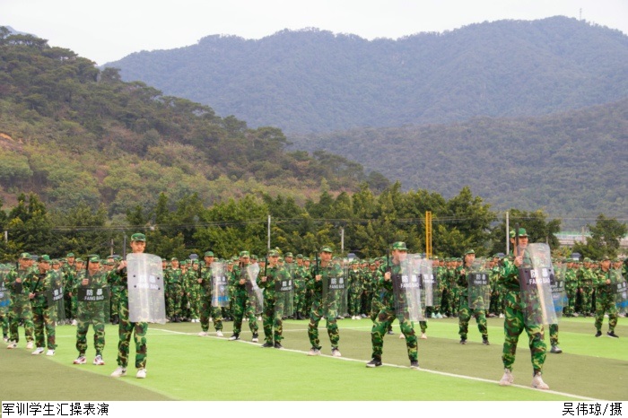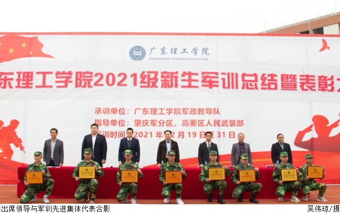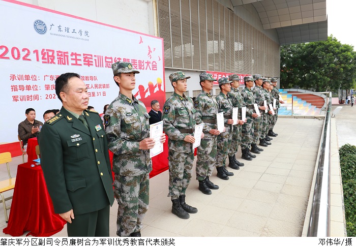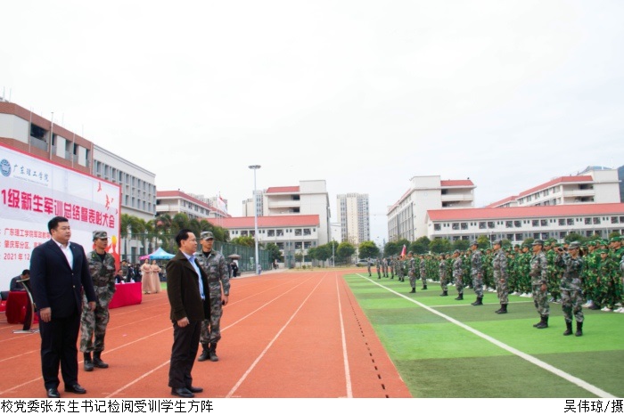 本网讯(新闻中心 曾剑文/谢雪婷/田嘉乐)12月31号上午9时,伟德官网2021级新生军训总结暨表彰大会在高要校区、鼎湖校区田径场同时举行。肇庆军分区副司令员廉树合作军训总结指导讲话,校长张湘伟、党委书记张东生检阅军训成果,党委副书记张宗珊、黎会友作2021年新生军训总结讲话,刘香萍副校长宣读表彰决定,大会分别由校长助理唐建宁、舒程主持。