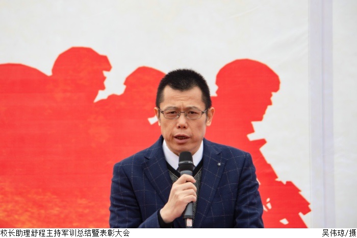 校长助理唐建宁、舒程宣布2021级新生军训任务圆满完成。