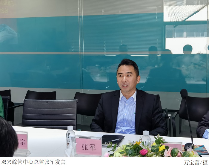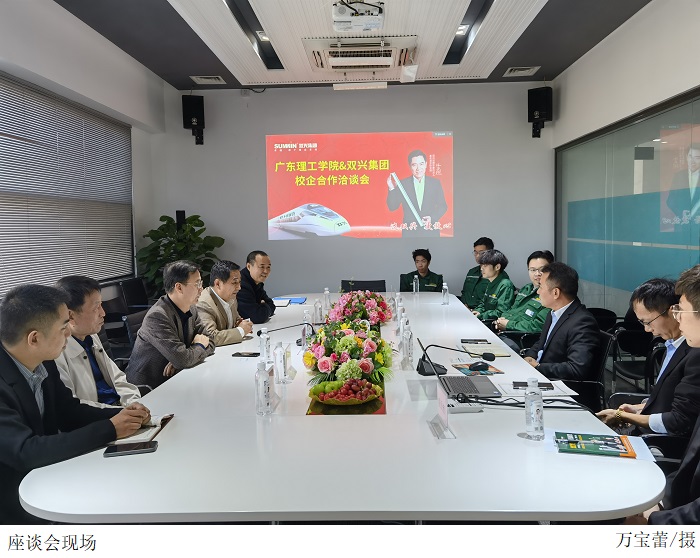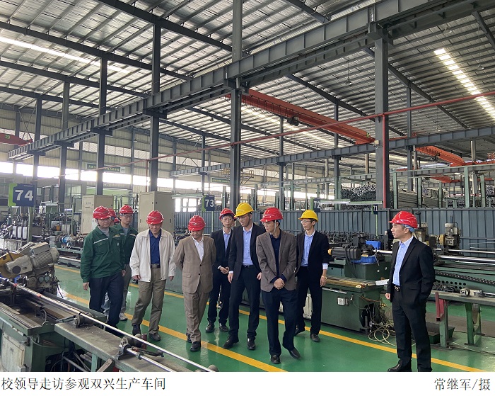 本网讯(学综办 万宝蕾)为创新伟德官网人才培养模式,深度推进产教融合发展,了解学生在企业实习情况,12月8日党委副书记张宗珊、副校长谭锦兴、校长助理于兆勤及学生企业综合实习管理办公室成员一行前往广东双兴新材料集团有限公司走访调研,看望慰问伟德官网实习学生,并与双兴集团综管中心总监张军、管件事业部总监李宪宗、生产中心经理谭宗宁、人事总监徐猛进行交流座谈。