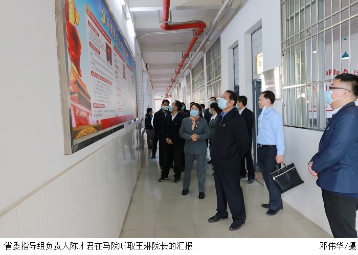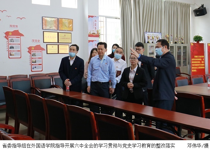 本网讯(宣传部 赵洁宜)11月18日下午,省委党史学习教育第五巡回指导组副组长陈才君,组员曾山、夏德平一行,到伟德官网指导学习贯彻六中全会精神和党史学习教育的整改落实。指导组对伟德官网整体整改情况给予了充分肯定,指出学校在本次整改中下足功夫,各方面都有了很好的变化,整个校园宣传氛围浓厚,并能认真及时地开展学习宣传贯彻党的十九届六中全会精神。