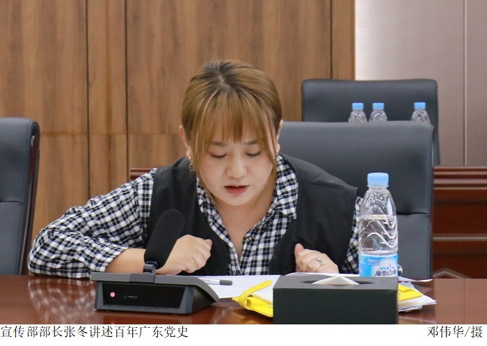 在培训专题会上,宣传部部长张冬围绕深入学习习近平总书记关于革命传统的重要论述,深化对中国共产党百年历史、中国共产党广东历史、中国共产党西江党组织革命斗争史的认识和理解,讲述了党在广东省的百年历史。党在广东的光辉历程是党的历史重要组成部分,是党在百年征程中坚守初心使命,为民族解放、国家富强、人民幸福顽强奋斗的精彩缩影。百年广东党史是一部党带领人民在南粤大地上勇立潮头、不断开拓的创业史,也是一部党带领人民在南粤大地上肩负初心使命,与人民心连心、同呼吸、共命运的同心奋进史。