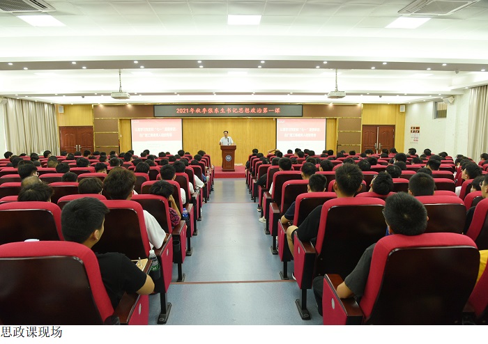 本网讯(宣传部 孟爱静)9月15日上午,党委张东生书记以“认真学习党史和‘七一’重要讲话,在广理工铸魂育人绽放青春”为主题,在振华楼学术报告厅开讲思政第一课,智能制造学院21级新生参加。