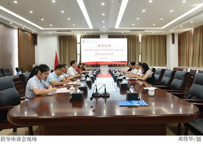 本网讯(宣传部 孟爱静)9月22日上午,肇庆市委党史学习教育第三巡回指导组、肇庆市委教育工委、市教育局一行4人到伟德官网,通过参观校园建设、召开调研座谈会、听取工作汇报、查阅相关资料、召开反馈会等形式对伟德官网党史学习教育开展情况进行调研指导。会议在科技楼12楼会议室召开,市委第三巡回指导组陆崇尧组长、巡回指导组成员江清林、陈安福、市教育局高校党建办公室李杰聪主任、伟德官网党委张东生书记、张宗珊副书记、组织部廖振宇部长、宣传部张冬部长、智能制造学院党总支彭清林书记、校党办、校办赵玉娴副主任参加会议。