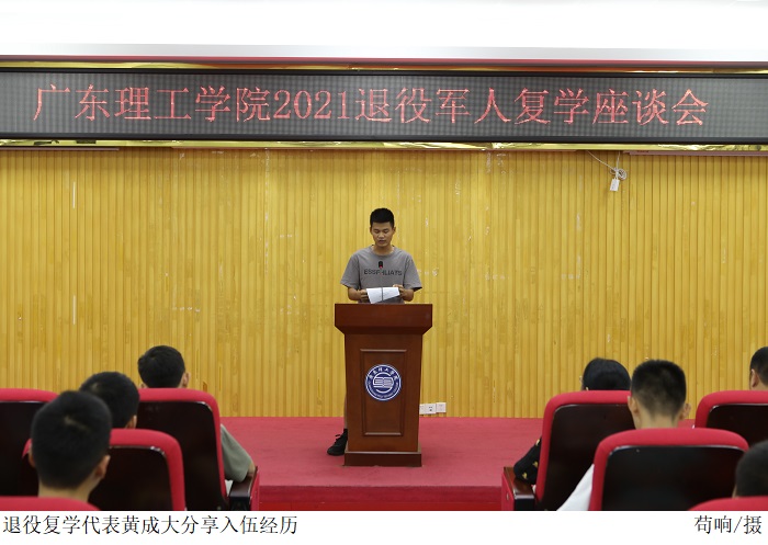 退役复学代表黄成大分享道,为响应国家的号召,2019年9月,他带着满腔热血从军入伍,经过长时间的坚持和努力,收获了一段难忘的经历,提高了身体素质和锻炼了意志力。今年,他退伍复学,作为人生的另一个新起点,希望自己能在大学练就立身本领,做德才兼修的有识青年。