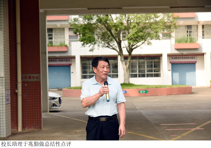 于兆勤教授做总结性点评,对演练全过程、各环节的组织和参演师生的反应速度、操作技能给予充分肯定,对高要区消防大队、工业自动化系师生和相关部门的支持配合表示感谢。他指出,本次实验室安全应急演练有助于增强师生实验室安全意识,有助于师生掌握逃生、自救、互救的基本方法,有助于提高师生处置实验室安全紧急突发事件的能力。通过此次实验室安全演练,不仅提高了工作人员临场指挥、队伍调动、现场处置、后勤保障等能力,还检验了多部门协同联动处置实验室安全事故的能力。希望师生们在今后的教学科研实验过程中,把安全放在第一位,不断学习安全逃生和自救技巧,增强安全防范能力,确保师生安全和校园稳定。