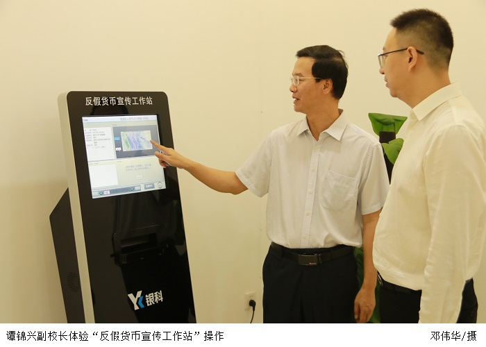 随后,谭锦兴副校长一行体验了“反假货币宣传工作站”的操作方式。