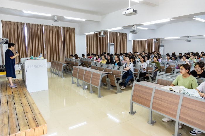 王琳教授以“光辉的历程——中共百年奋斗史”为主题,阐述了中国共产党在这百年发展历史中,完成和推进了解放大业、兴国大业、复国大业与强国大业四件大事。党在历史实践中不断检验真理、在前进路上反复探索、在错误中总结经验,矢志将中国特色社会主义新时代逐步推进,从而实现强国大业的百年奋斗目标。王教授指出,党历经百年而风华正茂、饱经磨难而生生不息的强大精神值得我们深刻学习和传承。随后,她列举了革命先烈的光荣事迹,呼吁同学们深切缅怀革命先烈,铭记历史,传承红色基因,将革命精神贯彻到底。