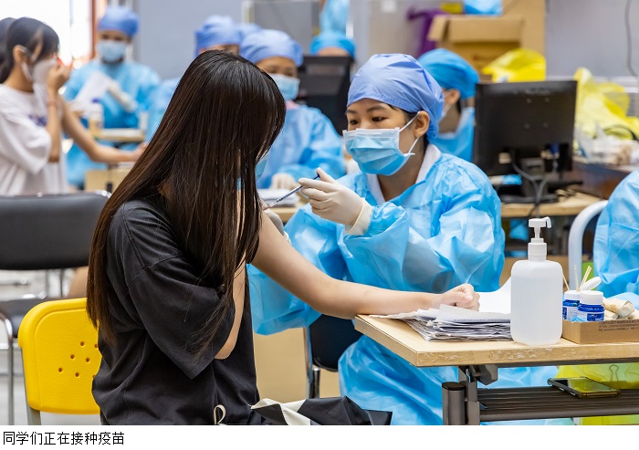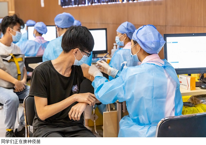 本网讯(校报记者 王佳妮)6月9日,鼎湖校区全面展开第一批疫苗第二针接种及第二批第一针的接种,早上八点至次日凌晨四点半,共计11000余名师生顺利完成接种。