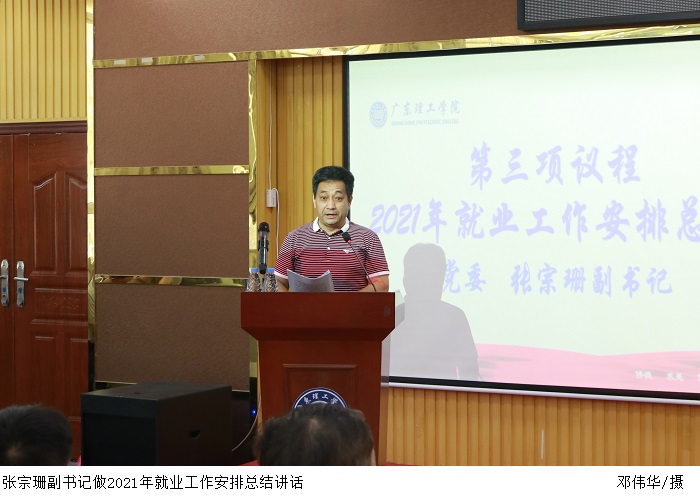 张宗珊副书记对今年度就业工作进行了部署,他传达了《2021年广东省高校毕业生就业创业十大行动方案》的通知,并列举了伟德官网毕业生就业工作的难点。同时,他提出三点建议,一是要把握就业形态新势态,树立就业工作新使命的要求;二是要做到就业格局大规划,做好就业工作精细化的工作职责;三是要重点推进就业服务开展、就业指导活动落实工作要点。他阐释,就业工作是衡量毕业生质量的重中之重,必须提供更加精确的就业指导与服务,助力伟德官网本科教学评估工作顺利进行,努力推进应用型人才培养工作再上新台阶。