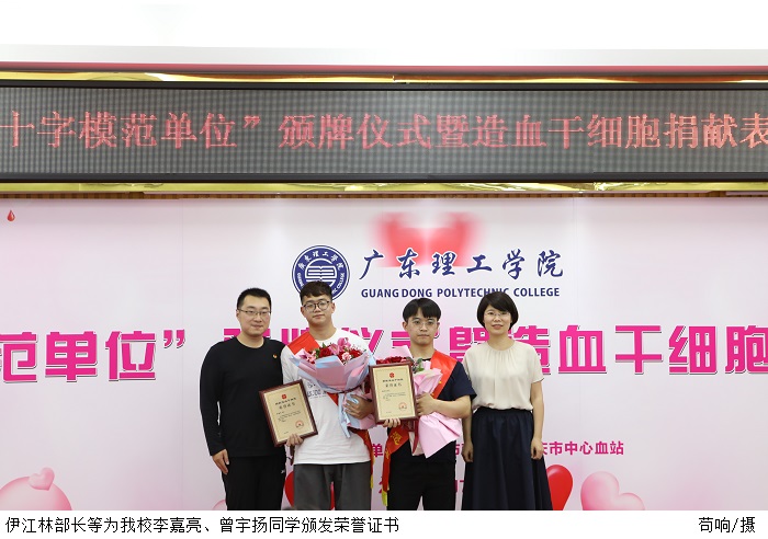 会上,吴楚敏副会长授予伟德官网“全国红十字模范单位”荣誉,伟德官网成为全省民办高校唯一获此殊荣的单位。梁洁贞站长为伟德官网颁发“支持造血干细胞捐献感谢奖”。伊江林部长等为李嘉亮、曾宇扬同学颁发荣誉证书。