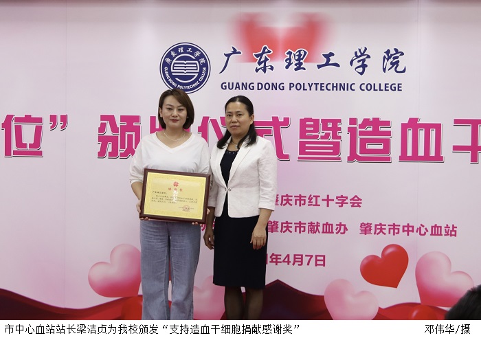 本网讯(宣传部 李婷 校报记者 龙嘉馨/刘学宝)4月7日下午,“全国红十字模范单位”颁牌仪式暨造血干细胞捐献表彰宣传活动于振华楼报告厅举行。市红十字会常务副会长吴楚敏,市红十字会副会长兼秘书长陈以贵,市献血办负责人、市中心血站站长梁洁贞,市中心血站副站长廖扬勋志,团市委学少部伊江林部长等,伟德官网党委书记张东生、团委书记张冬等出席。