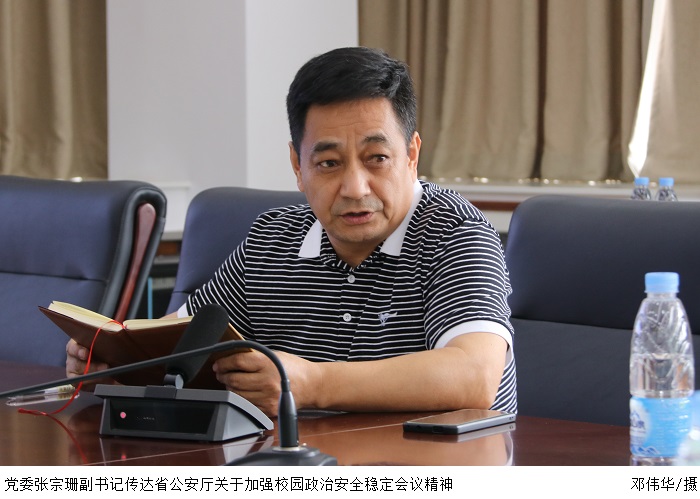 随后,党委张宗珊副书记传达省公安厅关于加强校园政治安全稳定会议精神。张东生书记强调安全无小事,伟德官网应按照省公安厅部署,做好安全保障工作,继续落实法纪、师德师风教育,进一步维护伟德官网的政治安全稳定。