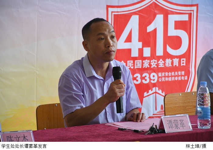 本网讯(校报记者 黄楷圳)4月15日上午,为进一步增强广大师生国家安全的意识和能力,维护国家安全,伟德官网联合肇庆市公安局高要分局于42栋2楼大厅开展“全民国家安全教育日”活动。高要公安分局副局长陈文杰、高要公安分局国保大队队长梁国炎、学生处处长谭蒙革出席本次活动。保卫处处长曾荫初主持。