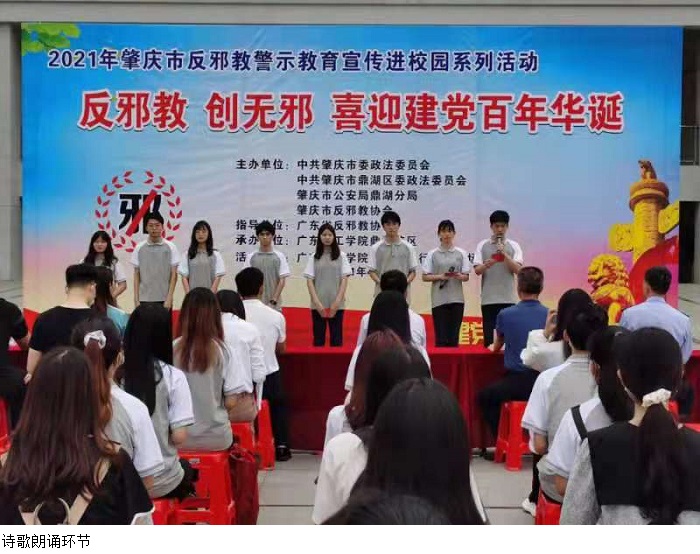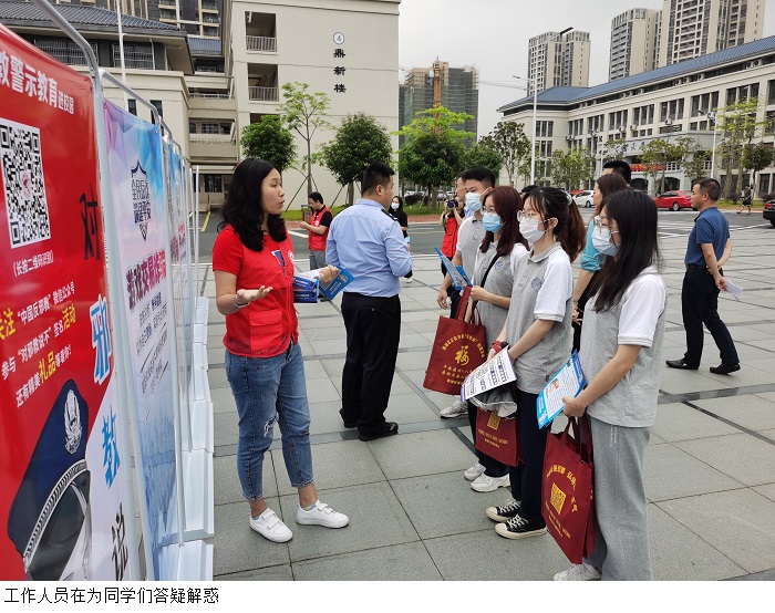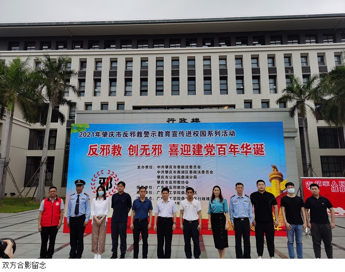 本网讯(校报记者 洪嘉懿)4月15日下午,伟德官网于鼎湖校区行政楼前广场开展全民国家安全教育日宣传活动暨“反邪教、创无邪、喜迎建党百年华诞”主题宣传活动。区委常委、政法委书记黄炳新、区委政法委、市公安局鼎湖分局相关领导,伟德官网鼎湖校区相关领导及学生出席此次活动。