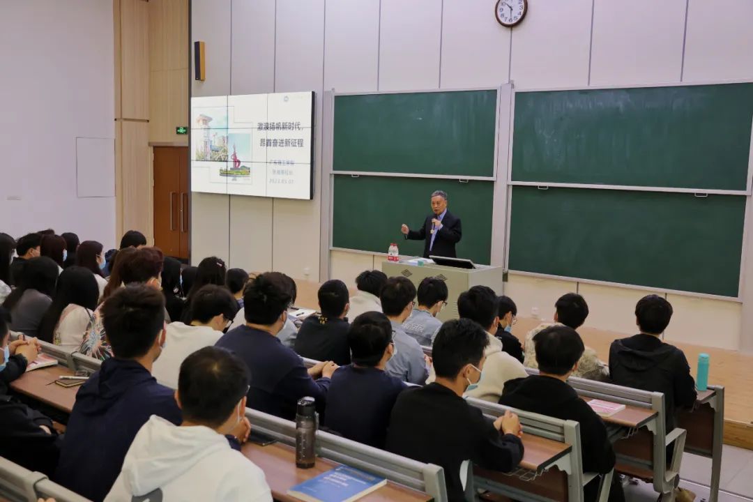 校长张湘伟以“激浪扬帆新时代,昂首奋进新征程”为主题开讲“思政第一课”。张湘伟强调“教育是国家发展的根本”,学校要立足长远发展,进一步落实好立德树人根本任务,为党育人、为国育才。他强调,同学们要重视专业基础、努力深造、提升自我,以孜孜不倦的精神努力钻研学科知识,培养自主创新能力,树立远大志向,在新时代昂首奋进,踏上新的征程,成为优秀的专业人才。张湘伟通过和同学们分享自身学习经历,告诫同学们要珍惜大学时光,鼓励大家充分利用学校资源不断提高自己的知识素养和能力,拓展自己的知识面,把握学习机遇,在学好课程的同时,注意自身的道德修养,树立正确的思想观念,严守道德底线,端正态度,严于律己,全方位提升自我,努力成为德智体美劳全面发展的新时代青年。