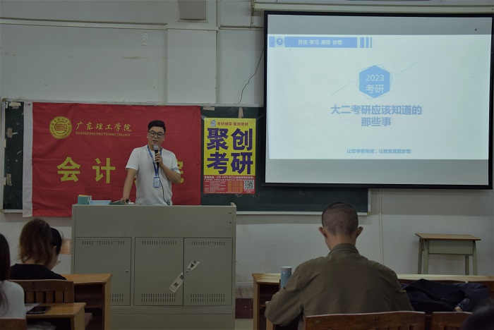 高要校区开展的“考研解析”讲座,对考研的各科复习规划进行了深度解析,解答了考研的高效备考捷径,为同学们解答了许多关于考研的疑惑,有利于同学们摆正心态,确定自己的专业方向,有针对性、有策略地对学业做出规划。鼎湖校区开展的研讨会由徐副书记主持开展。会上,徐副书记结合四个意识、四个自信和两个维护,指明“学党史、强信念、跟党走”不只是一句口号,更要付诸于实际行动,并结合当今中国考研现状以及亲身经历,提出学生应该与时俱进,不断学习,增加知识储备量。随后,现场干事陆续上台分享了红色故事,弘扬革命精神,并表示,会将提升学历划入职业生涯规划中的重要一环。