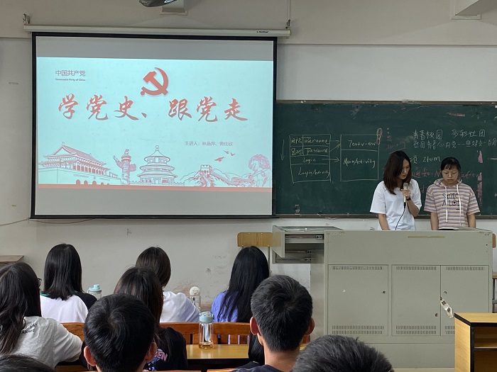 本网讯(信息技术学院 杨淙荣)为深入贯彻学习科学发展观,落实建党对象与积极分子的党史学习成效。4月22日,信息技术学院党建服务中心于振华楼421室开展“学党史、跟党走”党课活动,本次党课由学生党员林燕萍、黄佳欣主持。