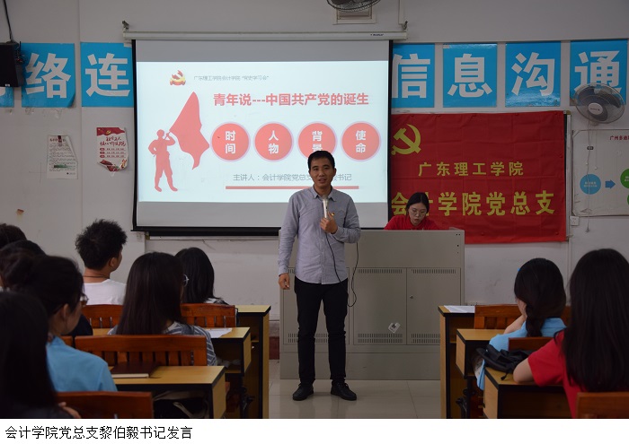 本网讯(会计学院)为深入贯彻落实党中央部署和省委要求,学习习近平总书记在党史学习教育动员大会上的重要讲话,加强学生的党性教育,提高党员发展质量,在会计学院党总支的统一部署和黎伯毅书记的组织下,会计学院于316日下午,在高要校区7211课室开展党史学习会启动仪式及第一场党史学习会。参加本次会议的嘉宾有会计学院党总支黎伯毅书记、学生党支部郭凤玮书记、会计学院在校学生党员及学生干部。