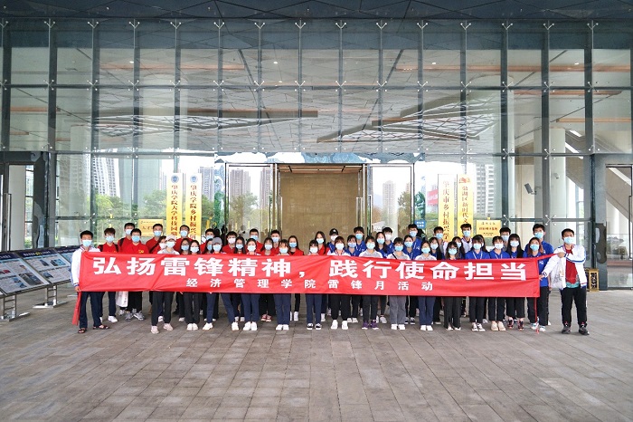 本次活动包括雷锋月主题宣讲会和清理河床两项内容。宣讲会上,在同学们观看了雷锋月相关纪录片后,杨书记指出,雷锋不仅是一个榜样,更是一股精神力量。大学生们应积极发挥先锋模范作用,肩挑新时代青年的重担,将新时代雷锋精神内化到日常生活与学习中去,做到“有信念、有品行、有作为”。随后,杨书记带领所有志愿者们前往江滨公园清理河床垃圾,用实际行动践行并弘扬雷锋精神。